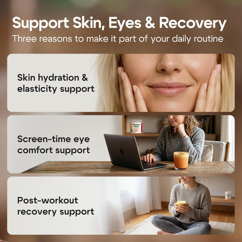 - SKIN YOU CAN SEE, EYES THAT FEEL THE DIFFERENCE: Clinical studies show astaxanthin supports skin hydration and UV resilience from the inside out, benefits no other golden milk even claims. Astaxanthin has also been shown to reduce digital eye strain and support visual comfort.